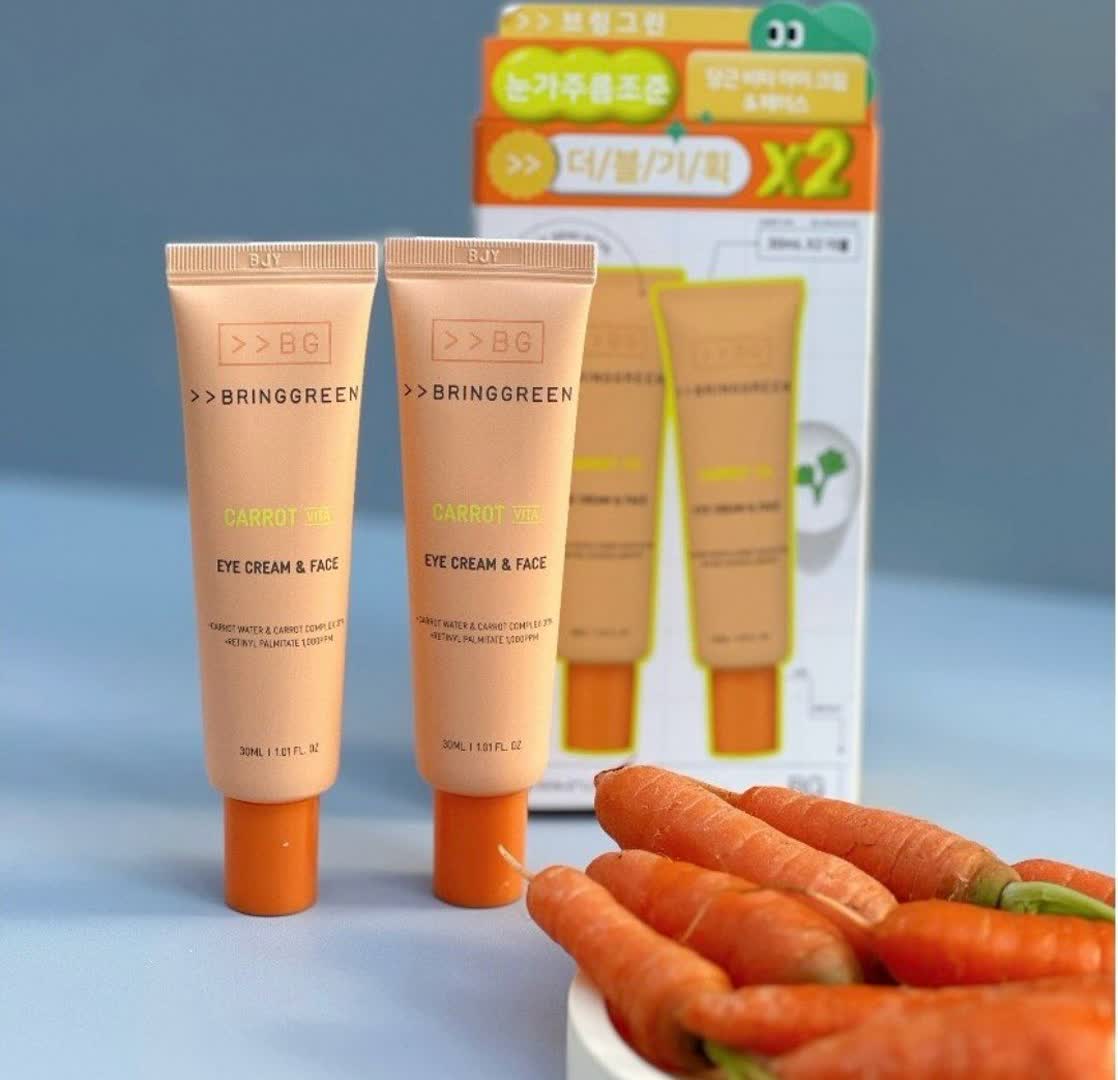 کرم دورچشم و صورت هویج برینگ گرین سرشار از عصاره هویج و ویتامین های B, C, A و E است و یک کرم تخصصی برای درمان خطوط و چروک تمام نقاط صورت است و به روشن شدن پوست و رفع پف و حلقه های سیاه اطراف چشم و تیرگی های صورت کمک می کند. کرم دور چشم Carrot  برینگ گرین بافت بسیار سبکی دارد و به راحتی روی پوست پخش شده و جذب می شود و پوست را آبرسانی و مرطوب کرده و از خشک شدن آن جلوگیری می کند.